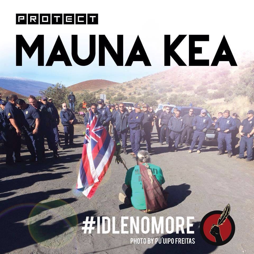 As warriors, we protest and oppose the desecration of our sacred land WITH aloha in our hearts. We are #IDLENOMORE. We go in harmony, with positive energy that we are in this together, trusting in one another to carry this same message. Aloha patriots protecting the mauna kapu.
