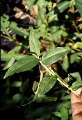 2. n. The wandering Jew or dayflower (Commelina diffusa), known in many temperate and tropical countries, a creeping weed, rooting at the joints, and bearing grasslike, ovate leaves and small bright-blue flowers. (Neal 185.) Also honohono wai, and mākolokolo. Cf. honohono ʻula.