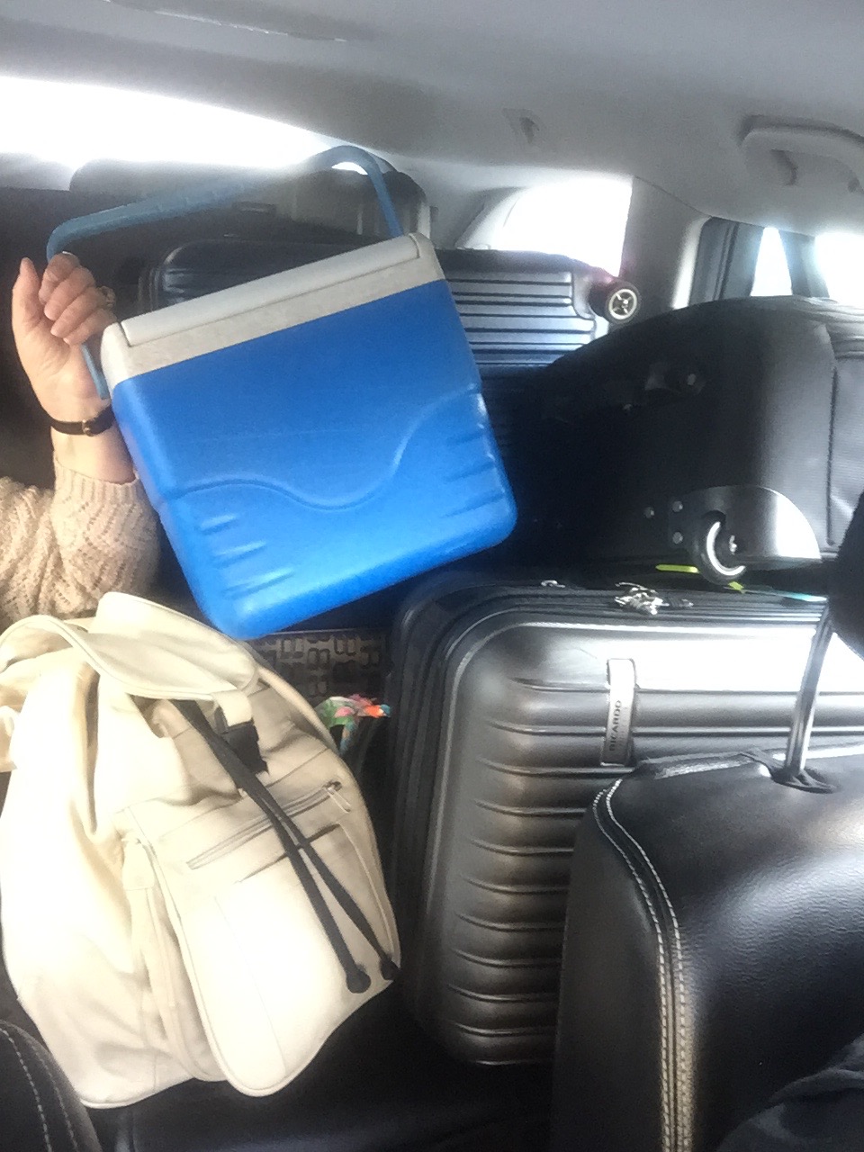 Yup. That’s our ukana. And not even all of it. As we were leaving Copenhagen, I had to call a cab because the other option was to lug everything 1/4 mile to the metro station (which is how EVERYONE goes to the airport). So out of nine people (two of them young children), two of us (me and my mom) went in a cab and the cab driver stuffed in as many pieces of ukana, big and small, as possible, in his mid sized cab. We are talking 50 lb take it to the limit big ukana, a few medium sized rollies, and a million handcarts because since we can all take on two carry-ons then by golly, we will! Thankfully, the cab driver was a sport, a young man from Iraq, who was quite impressed with his tetris skills. He even took a pic of it so he could “snapchat” it. Lol.
